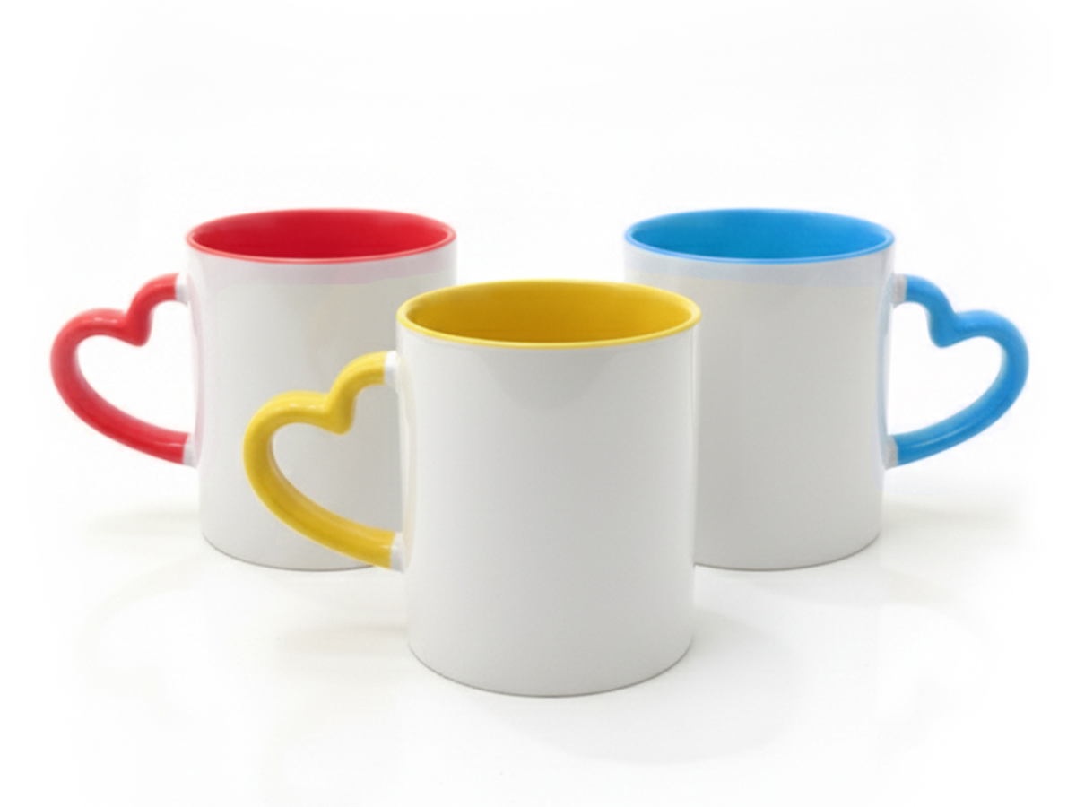 چاپ روی ماگ دسته داخل رنگی قلبی