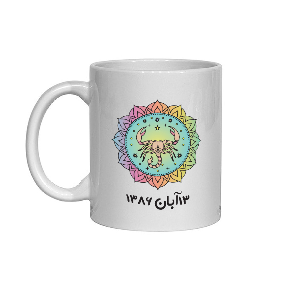 این ماگ سرامیکی نفیس، تجلیلی هنری از متولدین ماه آبان و نماد پرقدرت آنها، یعنی عقرب، است. طرح اصلی شامل تصویر یک عقرب با رنگهای جذاب و زنده، محاط در یک ماندالای رنگینکمانی و پرنور است که جلوهای عرفانی و دلنشین به محصول بخشیده است. استفاده از فونت فارسی زیبا برای درج «تاریخ تولد» به این محصول هویتی کاملاً سفارشی و یادآور لحظات و سالهای خاص زندگی بخشیده است. این ماگ نه تنها یک ظرف کاربردی، بلکه یک هدیه تولد خاص و ماندگار با جزئیاتی شخصیسازیشده است.