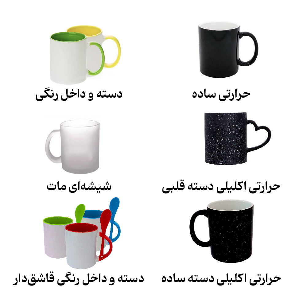 - جنس محصول: امکان چاپ بر روی انواع ماگ شامل: