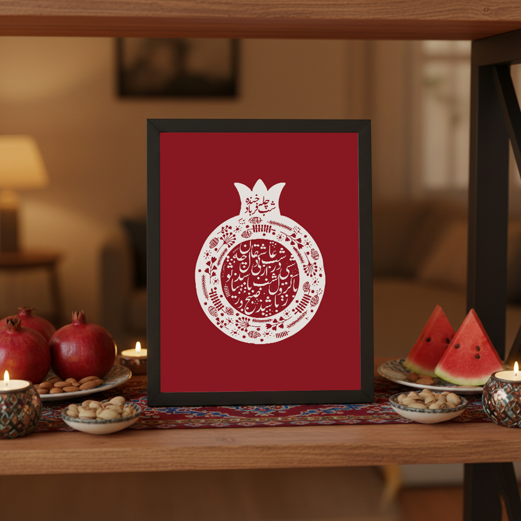 قاب خطاطی طرح انار یلدا و شب چله