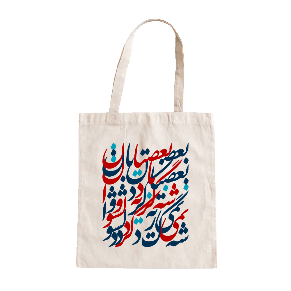 توتبگ خاص و هنری با طرح خوشنویسی مدرن، الهامگرفته از شعر احساسی «بعضیا دلشون با گریه وا نمیشه»، انتخابی متفاوت برای علاقهمندان به هنر و احساس است. در طراحی این محصول، متن خوشنویسی نستعلیق در قالبی مربع و به شکل ناخوانا و انتزاعی قرار گرفته تا مفهومی عمیق و احساسی را منتقل کند.این ترکیب از هنر تایپوگرافی ایرانی با طراحی مدرن، باعث شده که توتبگ ظاهری چشمنواز و در عین حال مینیمال داشته باشد.