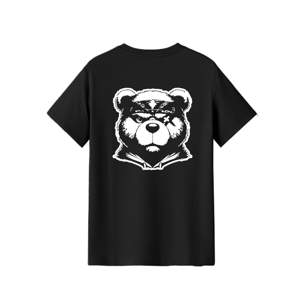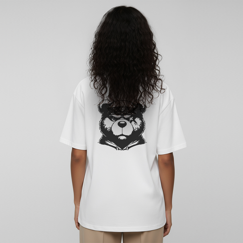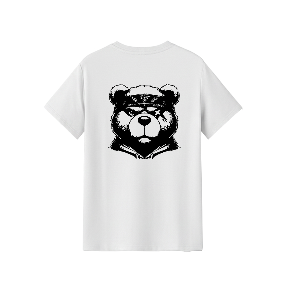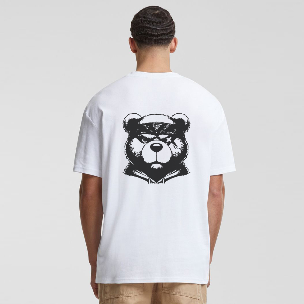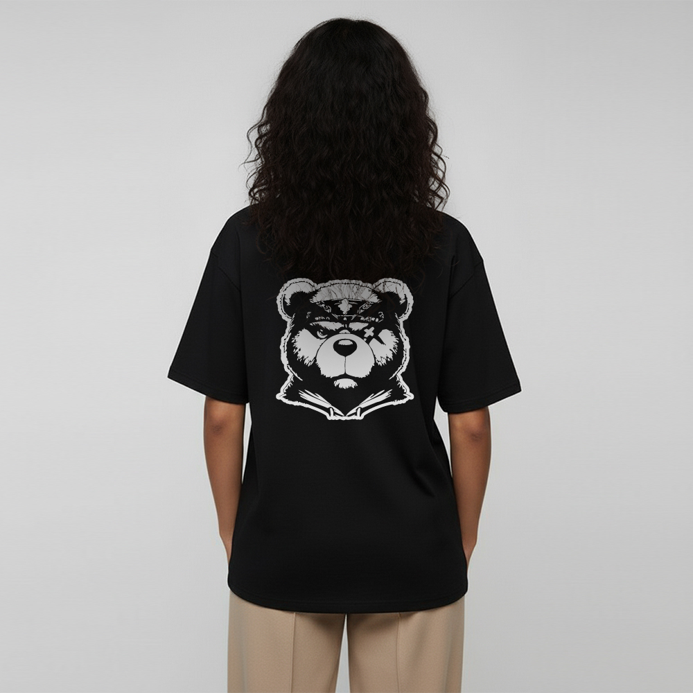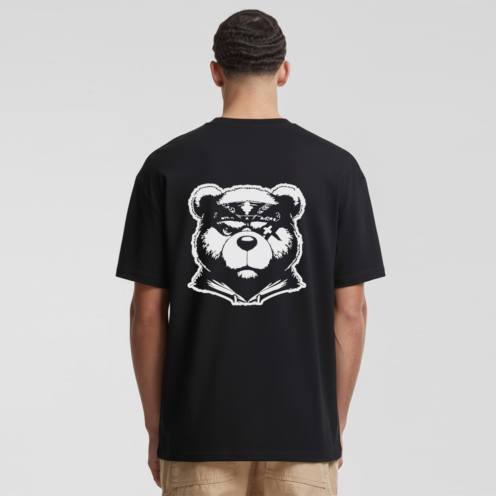 طرح Angry Bear ترکیبی قدرتمند از جدیت و طنز را به نمایش میگذارد. تصویر پشت تیشرت، یک خرس با ابهت است که حالتی خشمگین اما کنترلشده دارد و با یک هدبند یا نقاب، به سبک طرحهای خیابانی (Street Style) طراحی شده است که نمادی از قدرت و سرکشی است.