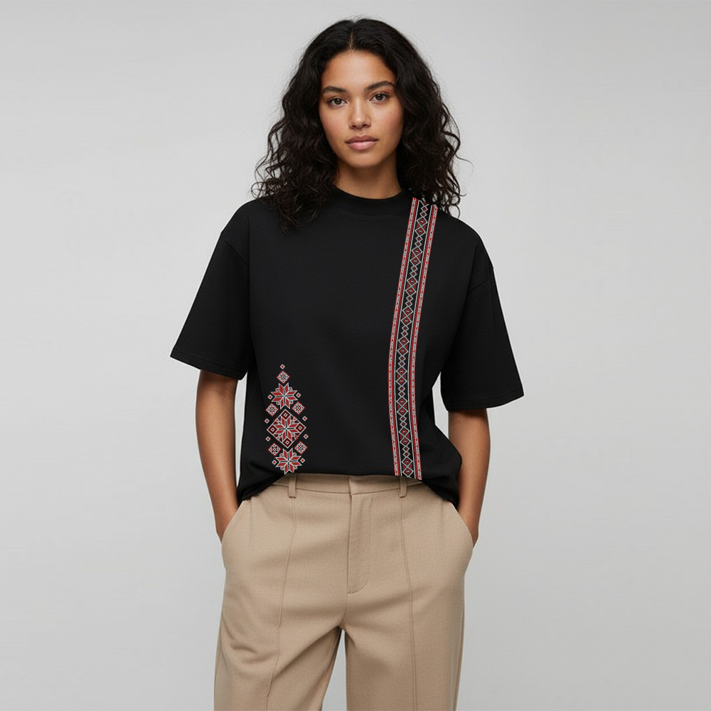 - استایل متمایز و بافرهنگ: طرح اصیل این تیشرت به شما کمک میکند تا استایلی با ریشه فرهنگی و در عین حال مدرن داشته باشید.